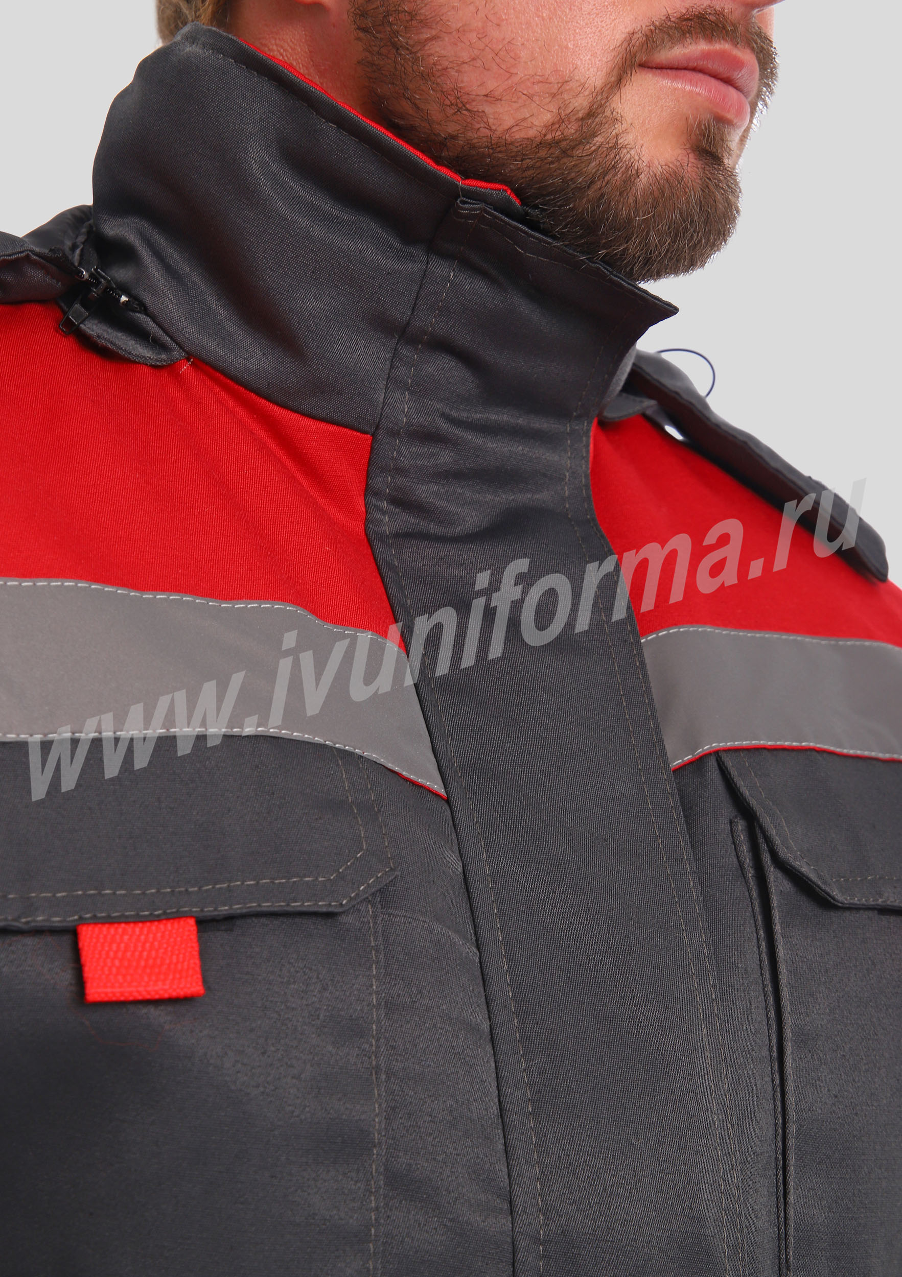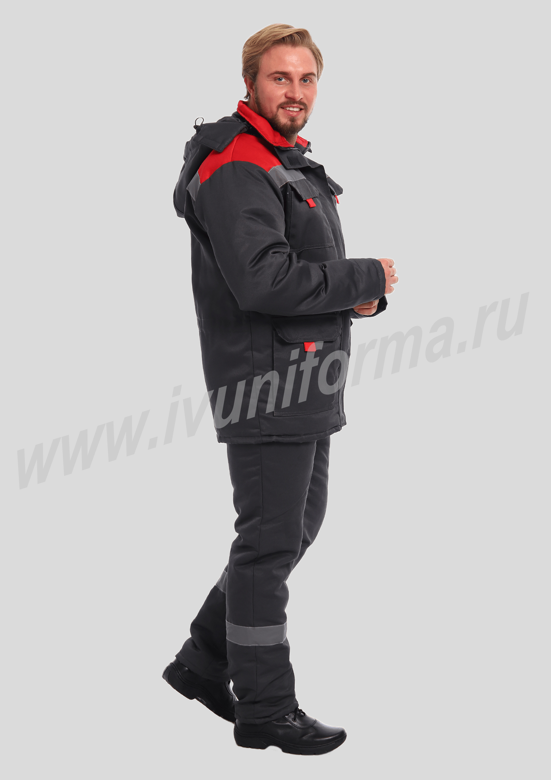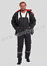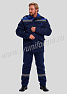 Костюм рабочий утепленный мужской состоит из куртки и полукомбинезона. Куртка удлиненная с воротником стойкой, прямого силуэта с застежкой на тракторную молнию с ветрозащитным клапаном на липучках "Velcro". На куртке два нагрудных и два нижних накладных кармана с клапанами и застежками на липучку "Velcro". Капюшон съёмный, на молнии ,с возможностью регулировки объема по лицевой части. Полукомбинезон прямого силуэта, с застежкой на две пуговицы и молнию. На брюках два передних кармана с косой линией входа. Однослойное утепление брюк объемом 200 гр/кв.м.