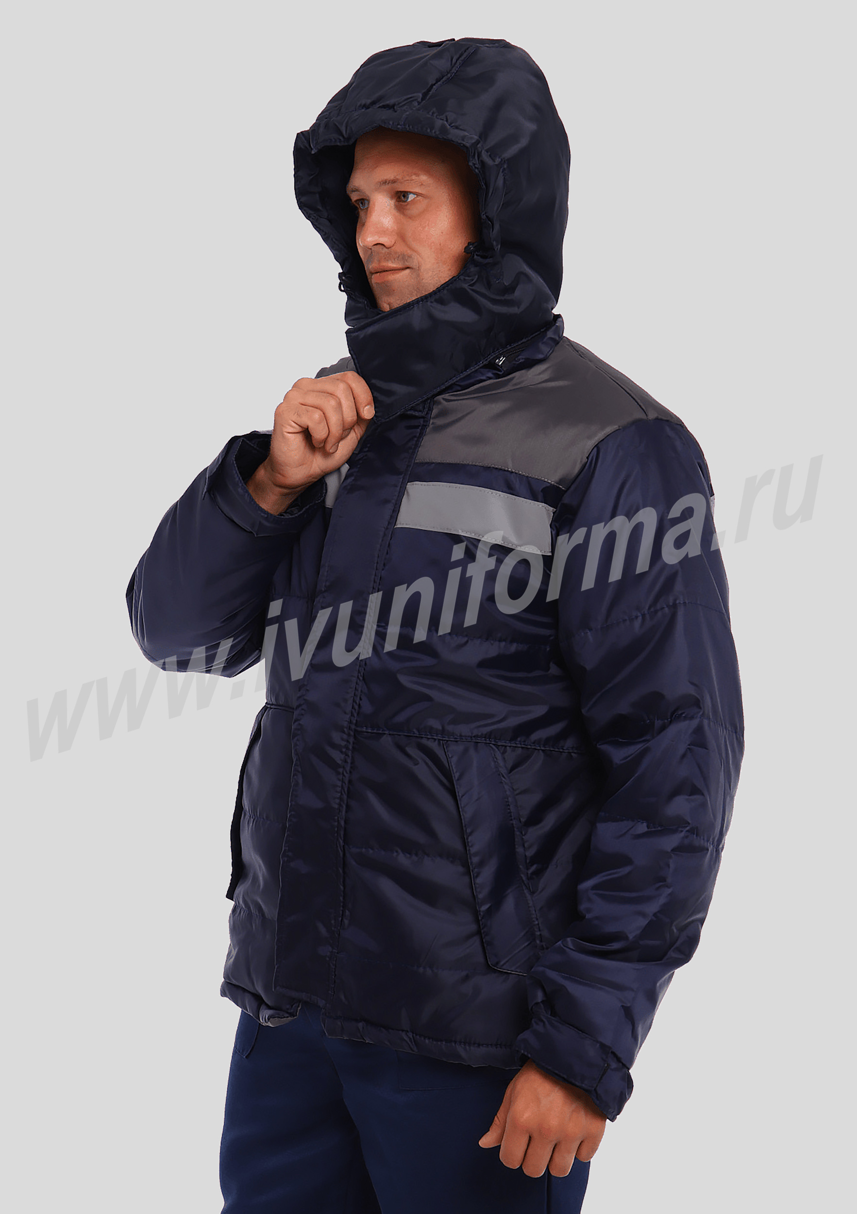 Куртка предназначена для инженерно-технических работников и представителей рабочих специальностей в качестве спецодежды для защиты от пониженных температур. Куртка выполнена с ветрозащитной планкой, застежкой на молнию и контактную ленту. Кокетка спинки и полочек выполнены из отделочной ткани, по шву притачивания кокеток спинки и полочек расположены светоотражающая полоса шириной 50 мм и светоотражающий кант, обеспечивающие защиту работающего человека в условиях пониженной видимости. Капюшон регулируется по лицевой части при помощи эластичного шнура и фиксаторов. Низ рукава выполнен на манжете, размер которого регулируется при помощи контактной ленты.